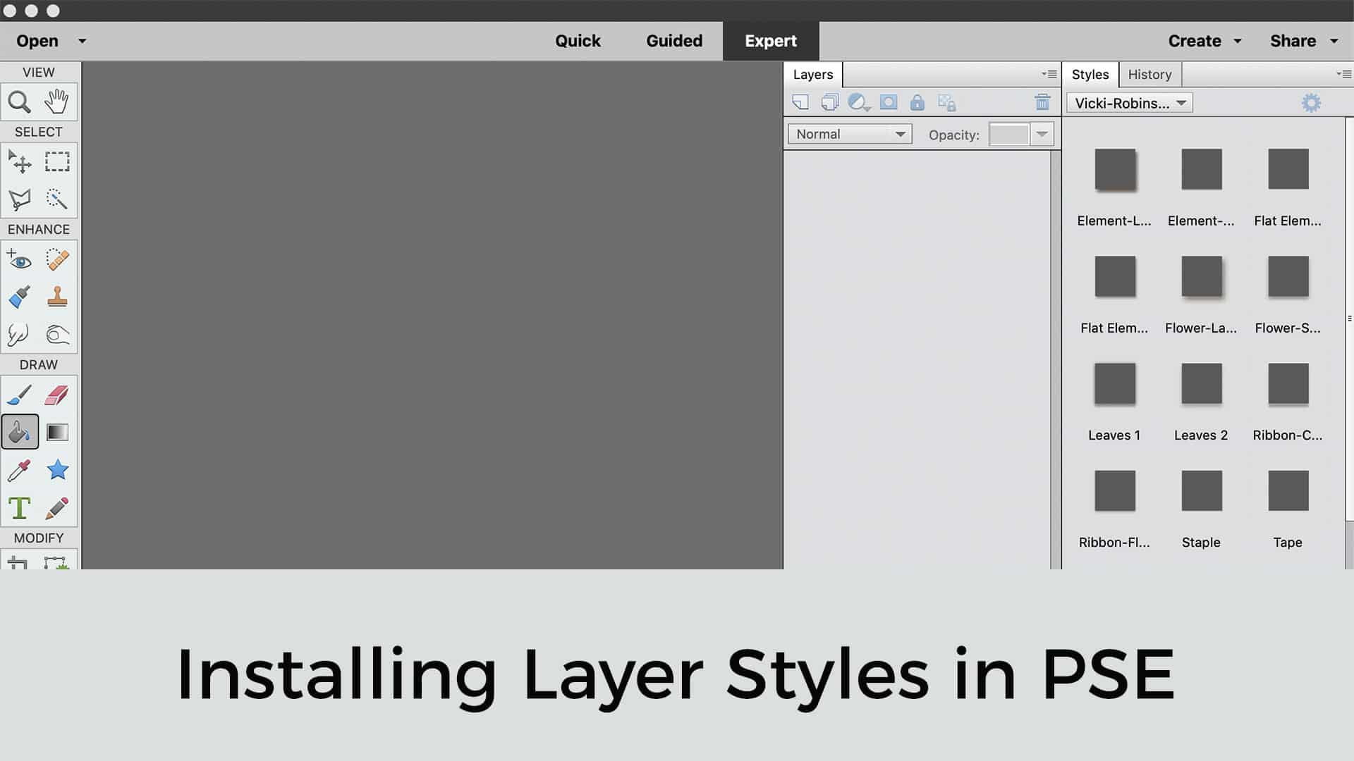 In Photoshop Elements 11 and newer, it’s a simple process to install styles.